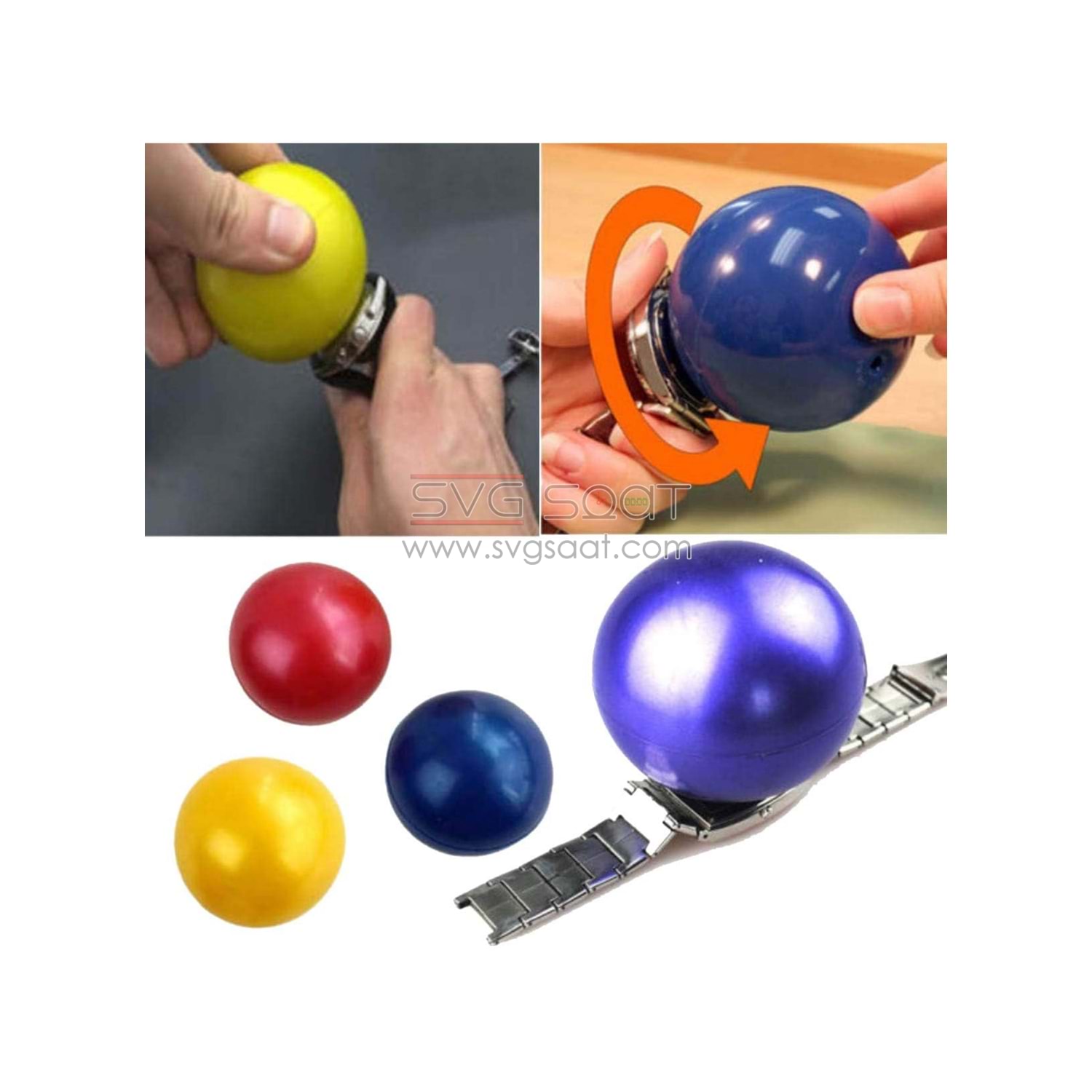 Kauçuktan İmal Saat Kapak açma topu. Çevirmeli saat kapaklarını zorlanmadan kolaylıkla açmasını sağlar.Saatlerin arka kapaklarını açmak için kullanılan bu top, vidalı mekanizması sayesinde güvenli ve kolay bir kullanım sunar. RENK ÇEŞİTLİDİR.