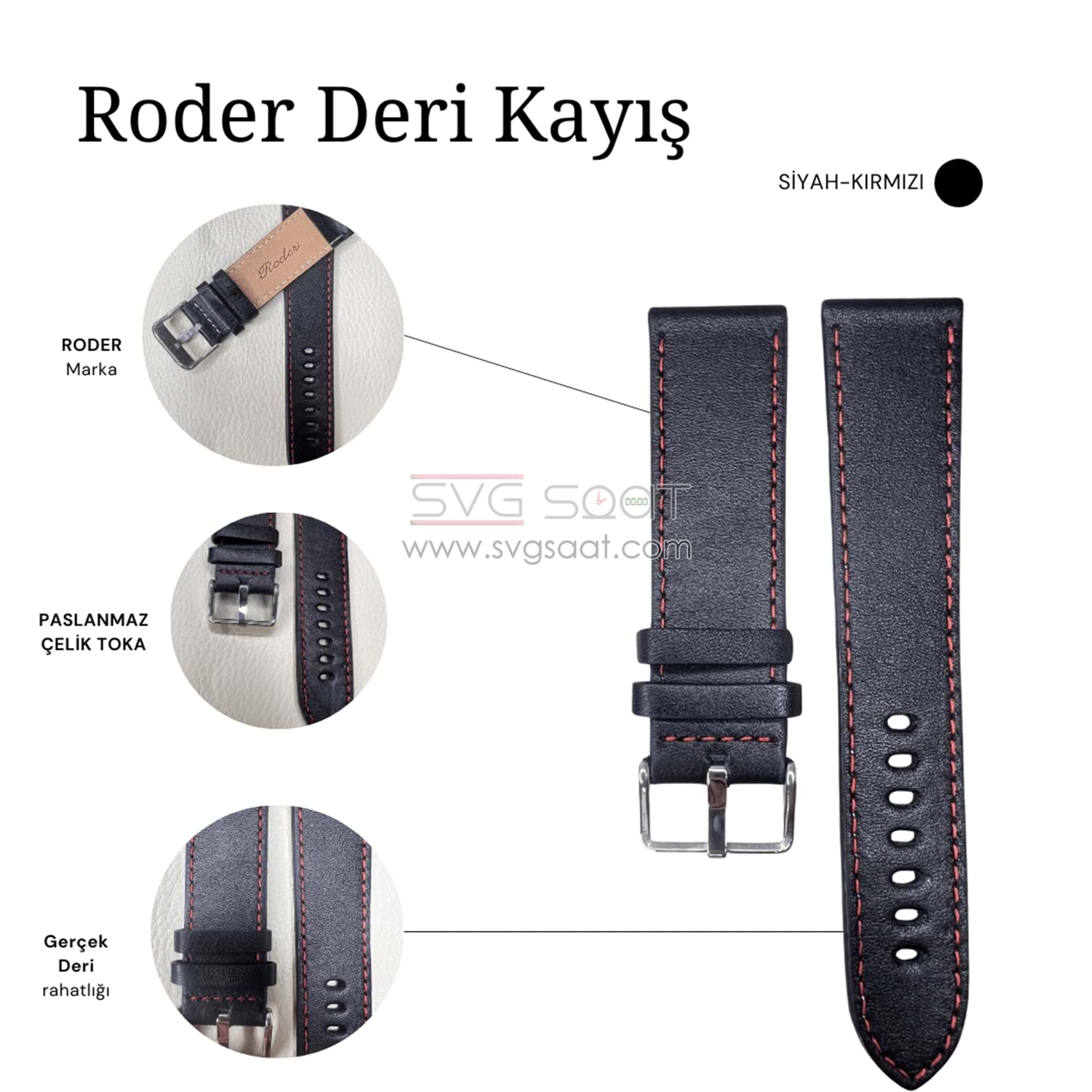 R4136R RODER DERİ KAYIŞ - SİYAH-KIRMIZI - 20MM
