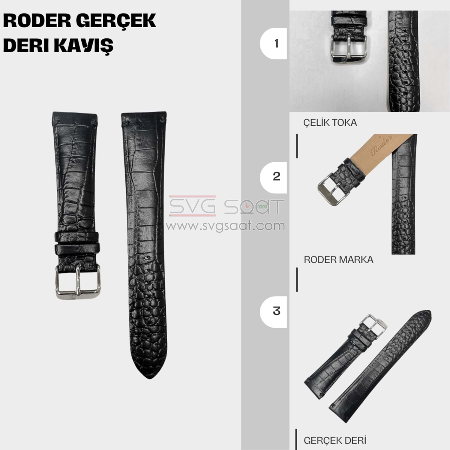 R4174 RODER DERİ KAYIŞ - SİYAH - 20MM
